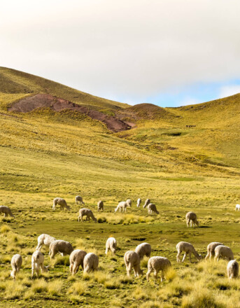 La alpaca forma parte de la familia de los camélidos sudamericanos que habitan en los andes del Perú, estas son criadas en rebaños en las punas a más de 4000 m.s.n.m en una geografía impresionante, donde la diferencia de temperaturas entre el día y la noche alcanzan entre -20°C a 30°C.